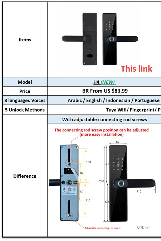 There are TT lock Version and Tuya WiFi version of H4, pls click the following picture to view more about thee TT lock version