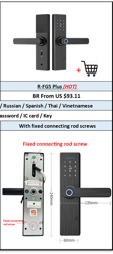 H4 is a new smart electronic lock recommended by RAYKUBE brand in 2022 with high cost-effectiveness. The electronic door lock H4 supports 6 unlocking methods, including Tuya / Smartlife APP/Fingerprint / Password / Smart Card / Key/Temporary password Unlock. In addition, the Global version H4 supports 8 language voices. And, The connecting rod screw on the back of lock is adjustable , which compares with the traditional electronic lock with fixed screw , H4 is more convenient to install.