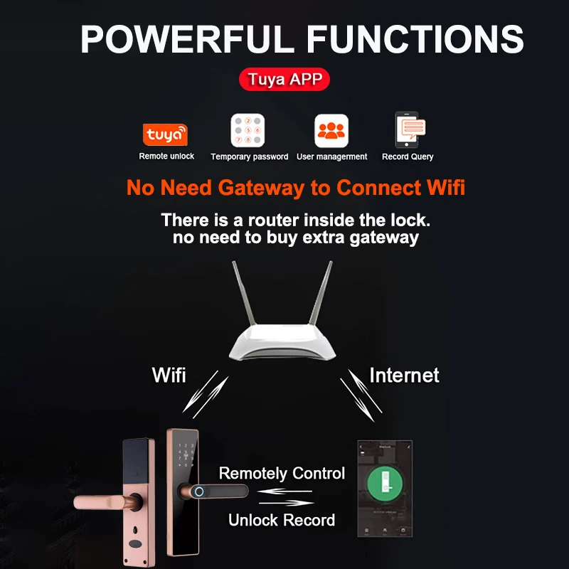 - Ways To Unlock: APP,Mechanical Keys,Card,WiFi,Password,FINGERPRINT