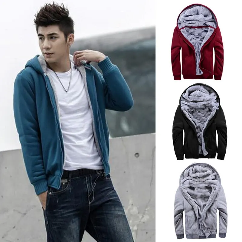 JODIMITTY Men’s Winter Hoodies Thickened Warm Coat 2022 New Men Casual Coat Fashion Zipper Solid Color Fleece Long Sleeve Jacket