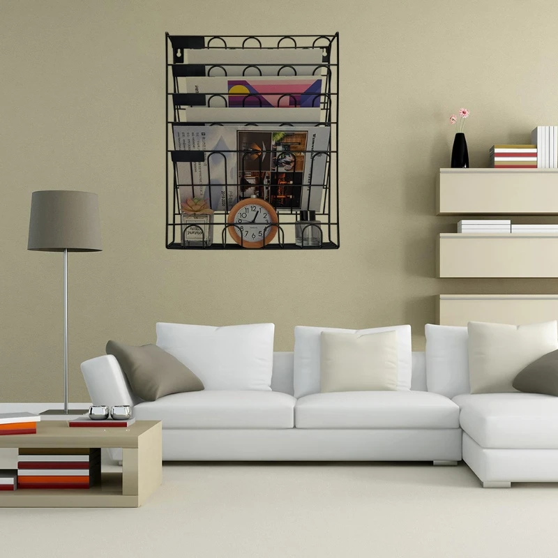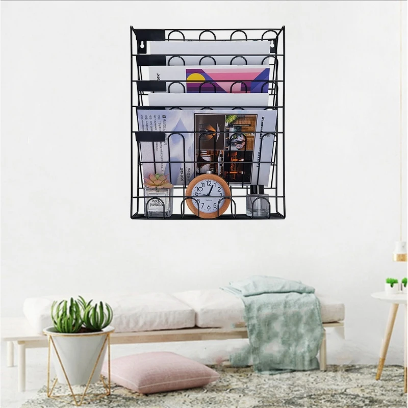 Office 6 Pocket Hanging Files Wall Mounted Metal Document File Organizer Magazine Holder Rack Display Files Newspapers