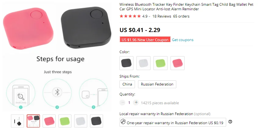 1 *1PC Smart Bluetooth Tracker (With battery)